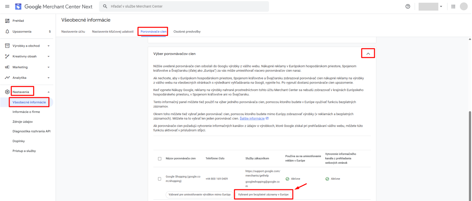 3. Na záver celého procesu prejdite do nastavení vášho GMC účtu, kde je potrebné prijať žiadosť, ktorá sa týka nastavenia Bezplatných záznamov. Prijatím žiadosti potvrdíte výber konkrétneho CSS partnera.